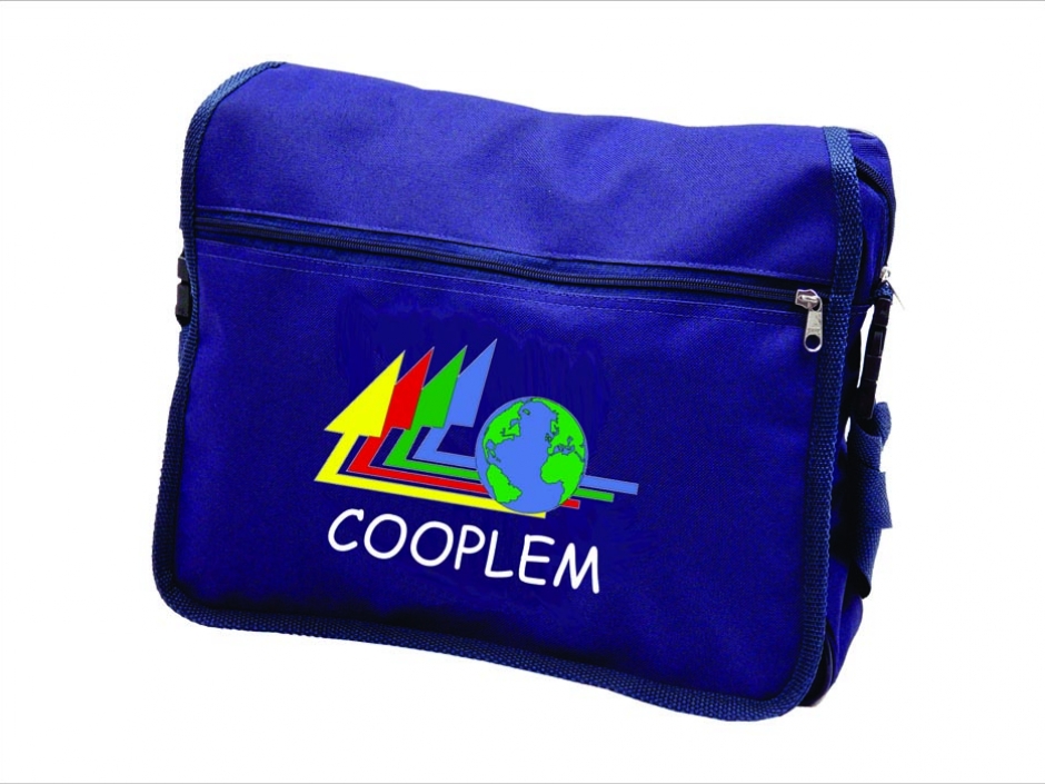 01 compartimento central, 01 divisória porta caneta e cartão, 01 bolso externo, c/ Tiracolo
